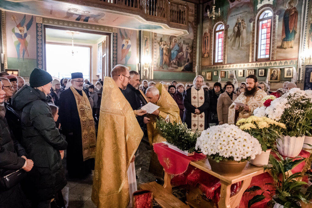 Dnia 12 listopada 2024 do naszej cerkwi przybyły relikwie Św. Jana Szanghajskiego. Uroczystości rozpoczęły się Św. Liturgią, następnie został odsłużony molebien i akatyst. W nabożeństwach, mimo że był to dzień dzień pracujący, wzięło wielu wiernych, którzy przyszli modlić się o wstawiennictwo Św. Jana przed Bogiem w ich intencjach. Po nabożeństwie osoby chętne bliżej poznać życie świętego zgromadziły się w sali parafialnej, gdzie wyświetlany był film „Aromat świętości” i odbyła się wspólna agapa. Zapraszamy do obejrzenia fotorelacji z tego wydarzenia.